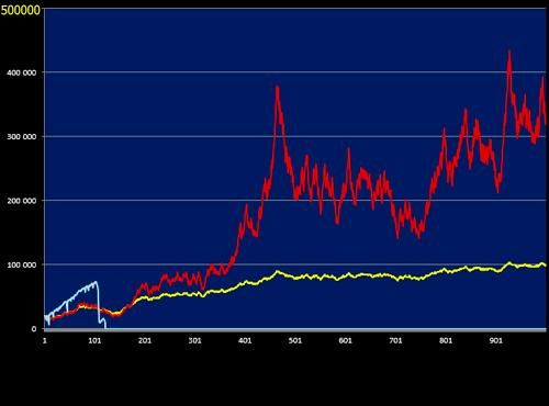 Большинство стратегий догона и ему подобных (мартингейл, фибоначи, система 6-2), при их моделировании, не позволили провести даже и 100 виртуальных прогнозов, чтобы не потерять свой банк. Хотя результаты исходов проведены случайным образом, это не дает нам повода думать, что в реальности такого не случится, ведь линии букмекерами составляются на равновероятные исходы, и элемент случайности здесь также очень действенен (по нашим расчетам около 33% результатов всех матчей НБА). Даже самому опытному прогнозисту всегда есть вероятность попасть в черную полосу. При этом, при моделировании отсутствуют психологический аспект игрока, влияющий на качество прогнозов, результат же в реальности может быть гораздо хуже. В итоге независимо от этого на выходе все равно имеем неопределенность этих стратегий догона и весьма мизерная вероятность поднять банк. Для нас куда более решающие факторы – стабильность и определенность дохода, которые получаются при игре флэтом. Поэтому правильнее будет играть именно этой системой, и выбирать игру фиксированной суммой или процент от банка ставки взависимости от успешности игры.